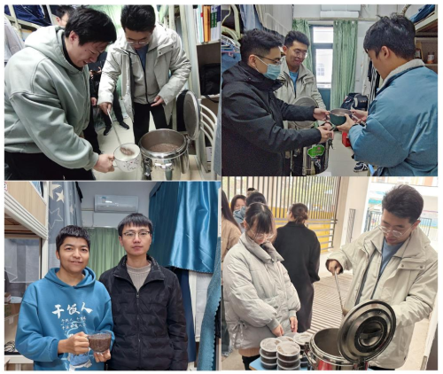 腊八节当日,2.1食堂将精心熬制的腊八粥盛放到保温桶中,老师们手提保温桶,走进在校学生宿舍,将热腾腾、香喷喷的腊八粥送到学生手中,提前祝同学们新春快乐,并叮嘱同学们寒假在校注意事项,确保在校安全。